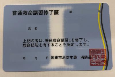 - 普通救命講習を受講し一定の技能を習得した方には、修了証を交付します。